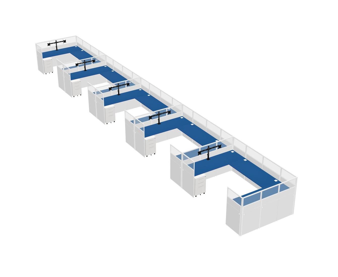 Système De Panneaux En U Prism Blue Pour 5 Personnes + Bras D'écran (bras Doubles) + Tiroirs Mobiles En Métal Pour 5 Utilisateur(s)