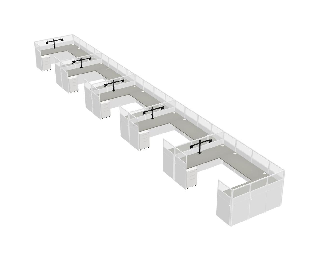 Système De Panneaux En U Grey Shadows Pour 5 Personnes + Bras D'écran (bras Doubles) + Tiroirs Mobiles En Métal Pour 5 Utilisateur(s)