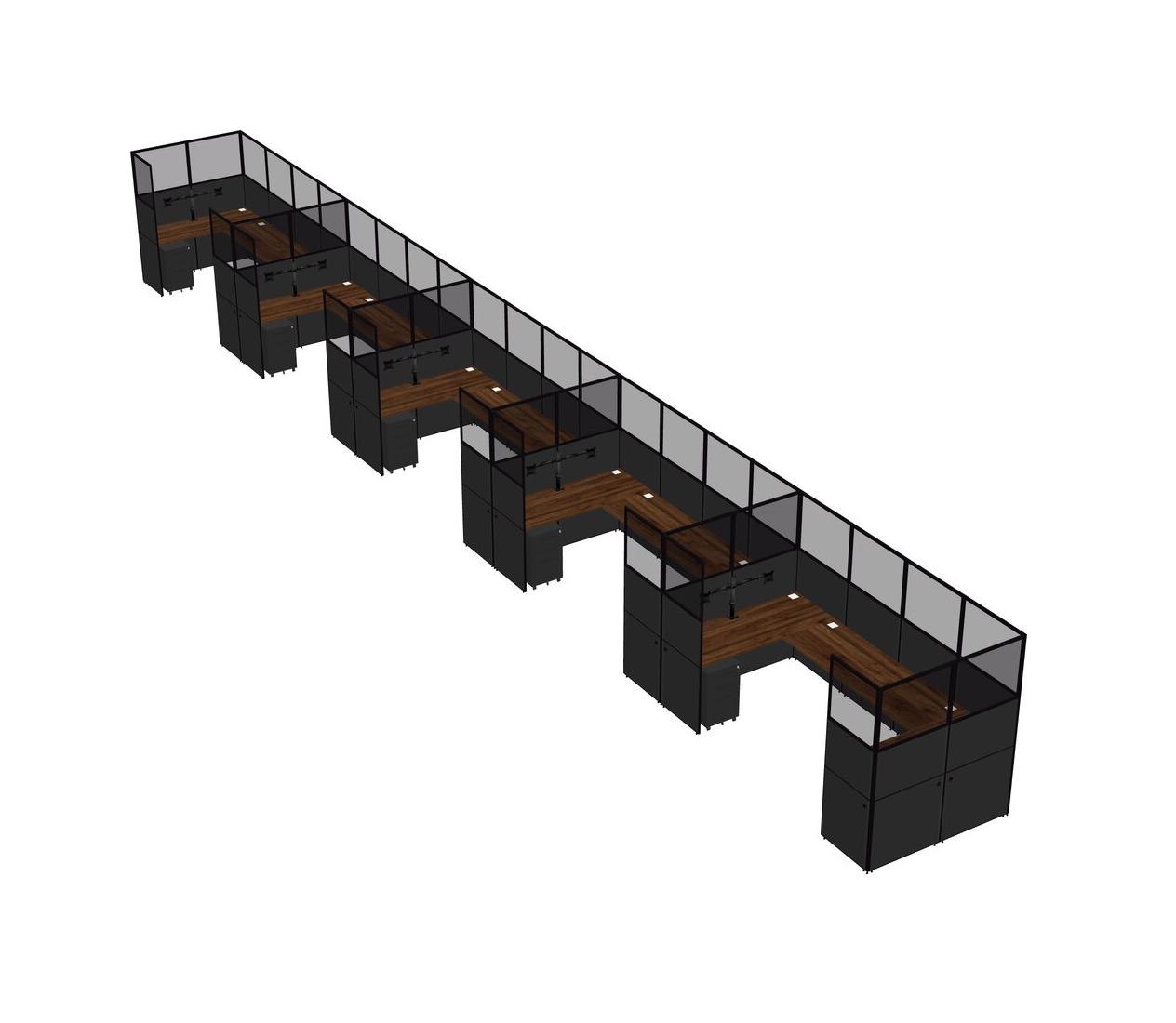 Système De Panneaux En U En Noyer Columbia Pour 5 Personnes + Bras D'écran (bras Doubles) + Tiroirs Mobiles En Métal Pour 5 Utilisateur(s)