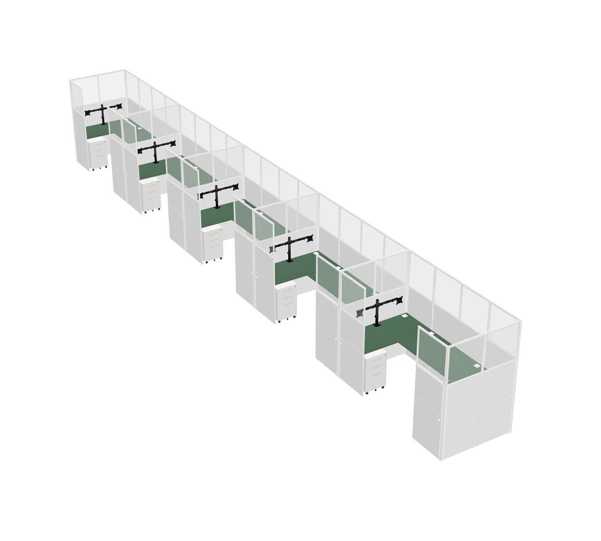 Système De Panneaux En U Vert Pour 5 Personnes + Bras De Moniteur (bras Doubles) + Tiroirs Mobiles En Métal Pour 5 Utilisateur(s)