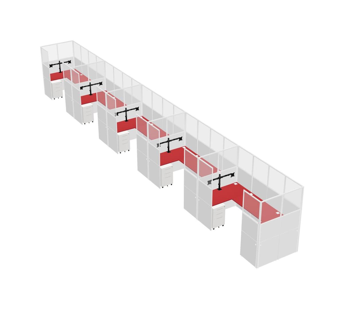 Système De Panneaux En U Prism Red Pour 5 Personnes + Bras D'écran (bras Doubles) + Tiroirs Mobiles En Métal Pour 5 Utilisateur(s)