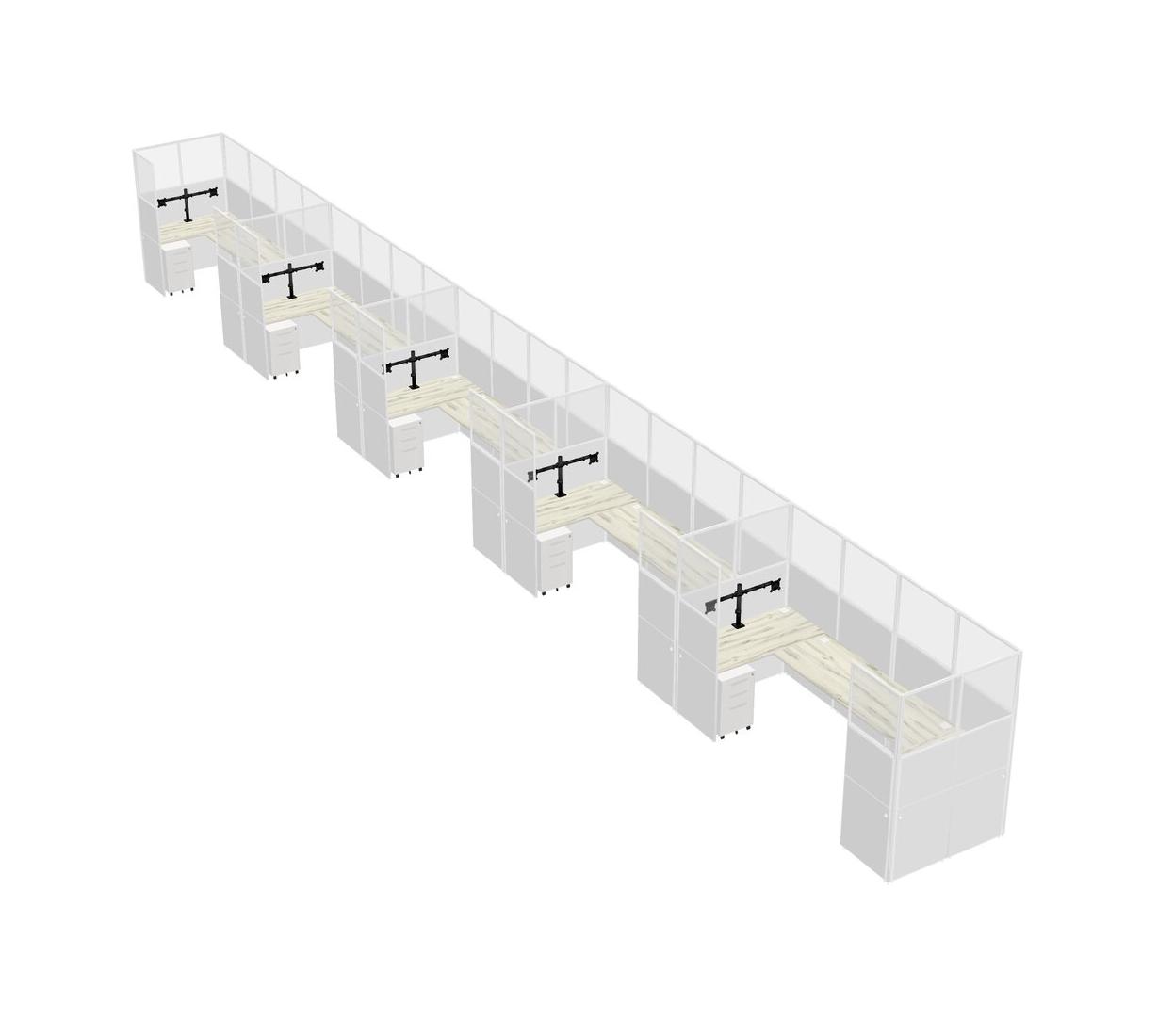Système De Panneaux En U Heinne Holz Pour 5 Personnes + Bras D'écran (bras Doubles) + Tiroirs Mobiles En Métal Pour 5 Utilisateur(s)
