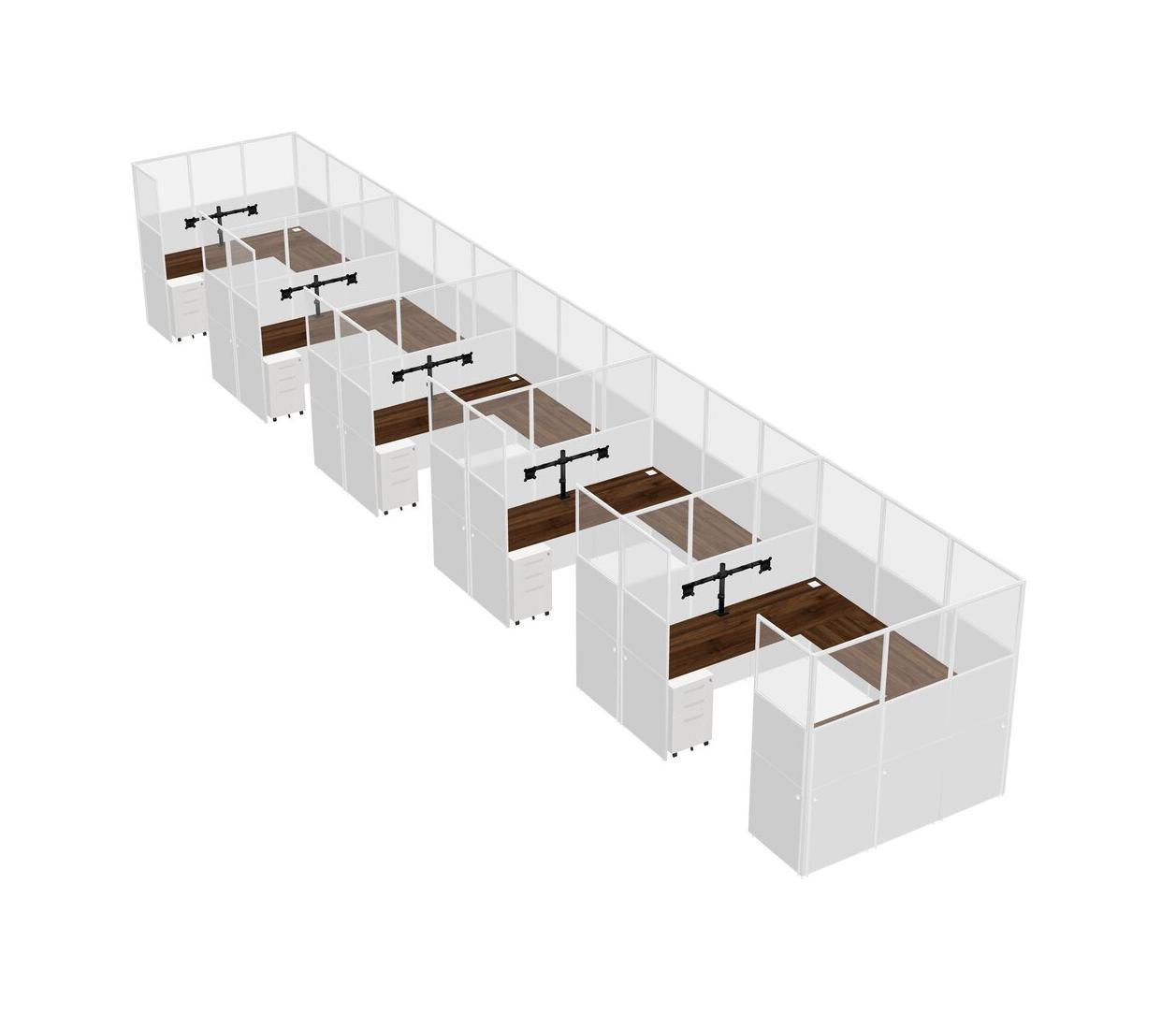 Système De Panneaux En U En Noyer Columbia Pour 5 Personnes + Bras D'écran (bras Doubles) + Tiroirs Mobiles En Métal Pour 5 Utilisateur(s)