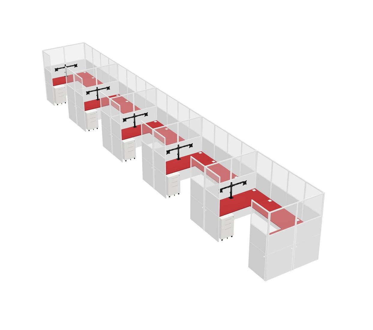 Système De Panneaux En U Prism Red Pour 5 Personnes + Bras D'écran (bras Doubles) + Tiroirs Mobiles En Métal Pour 5 Utilisateur(s)