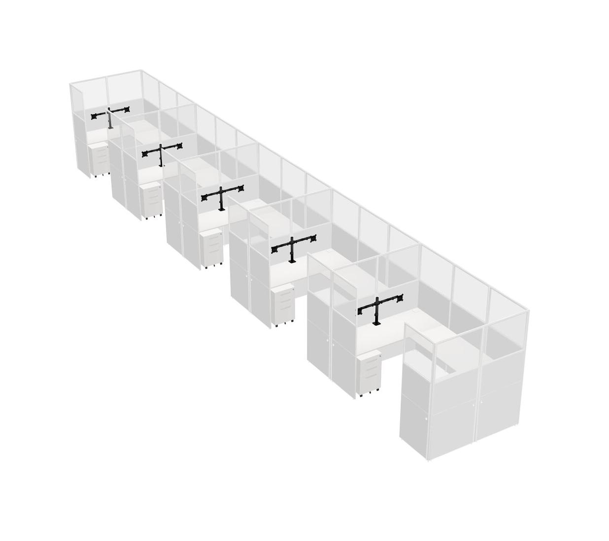 Système De Panneaux Blancs En U Pour 5 Personnes + Bras D'écran (bras Doubles) + Tiroirs Mobiles En Métal Pour 5 Utilisateur(s)
