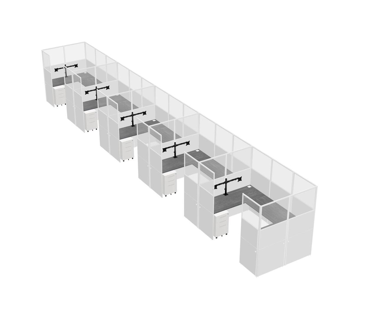 Système De Panneaux En U Gris Pour 5 Personnes + Bras D'écran (bras Doubles) + Tiroirs Mobiles En Métal Pour 5 Utilisateur(s)