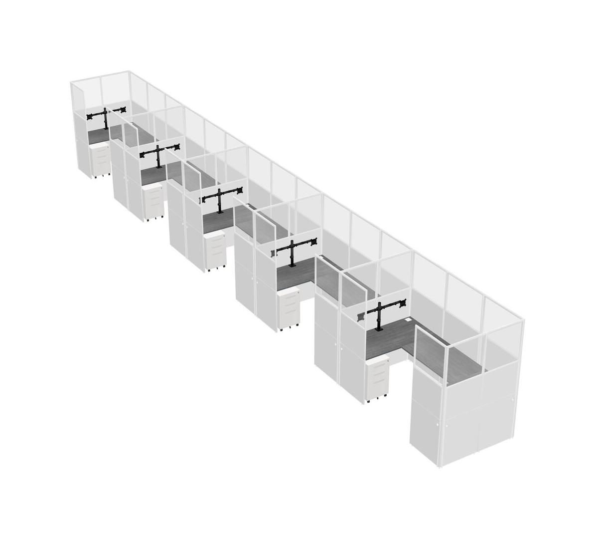 Système De Panneaux En U Gris Pour 5 Personnes + Bras D'écran (bras Doubles) + Tiroirs Mobiles En Métal Pour 5 Utilisateur(s)