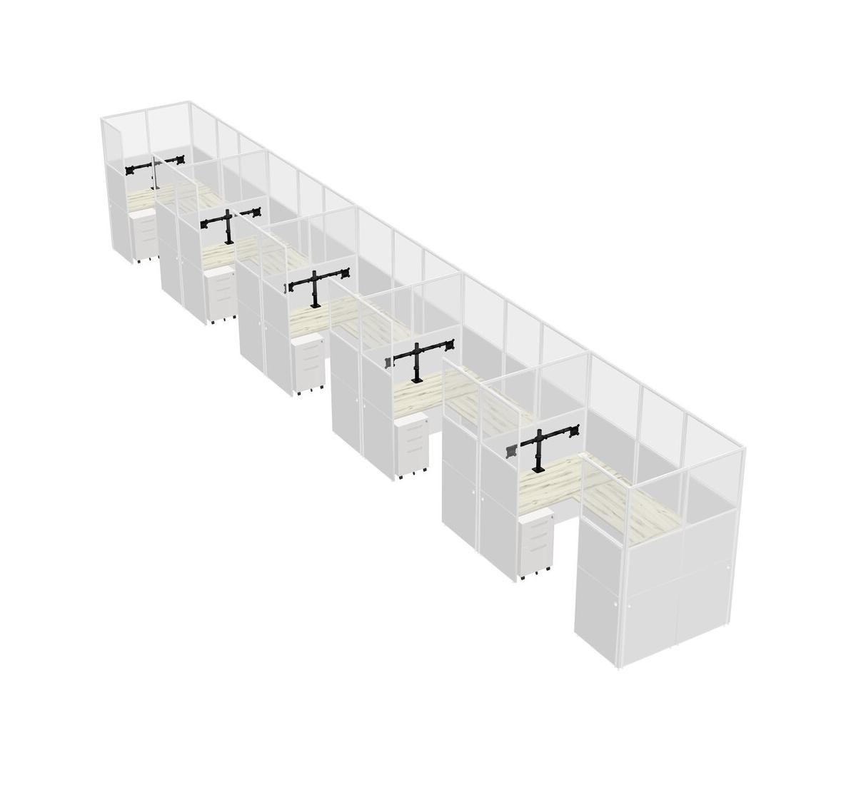 Système De Panneaux En U Heinne Holz Pour 5 Personnes + Bras D'écran (bras Doubles) + Tiroirs Mobiles En Métal Pour 5 Utilisateur(s)