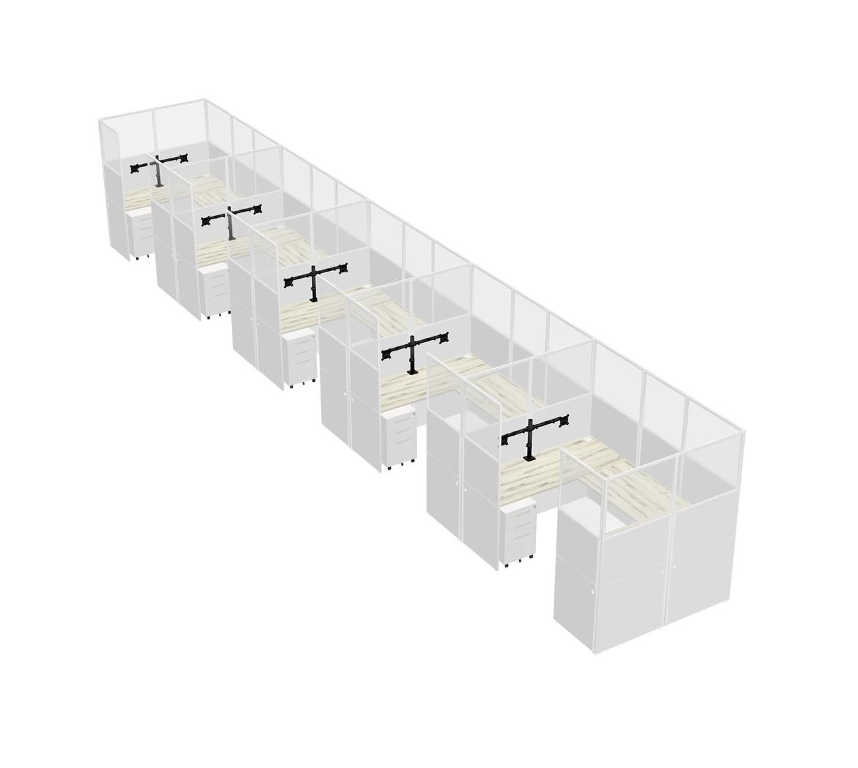 Système De Panneaux En U Heinne Holz Pour 5 Personnes + Bras D'écran (bras Doubles) + Tiroirs Mobiles En Métal Pour 5 Utilisateur(s)
