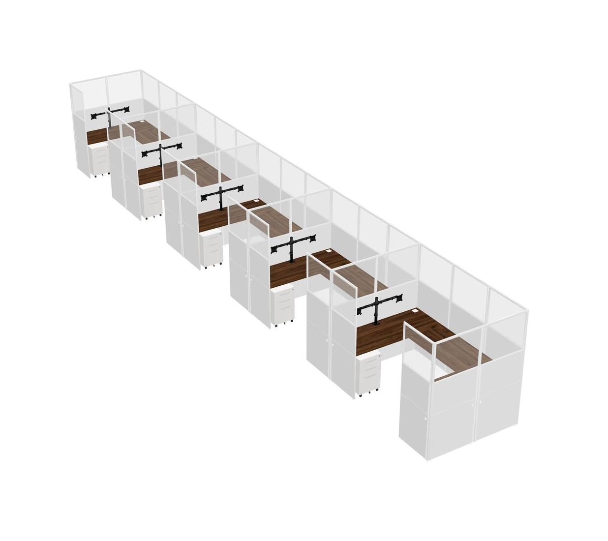 Système De Panneaux En U En Noyer Columbia Pour 5 Personnes + Bras D'écran (bras Doubles) + Tiroirs Mobiles En Métal Pour 5 Utilisateur(s)