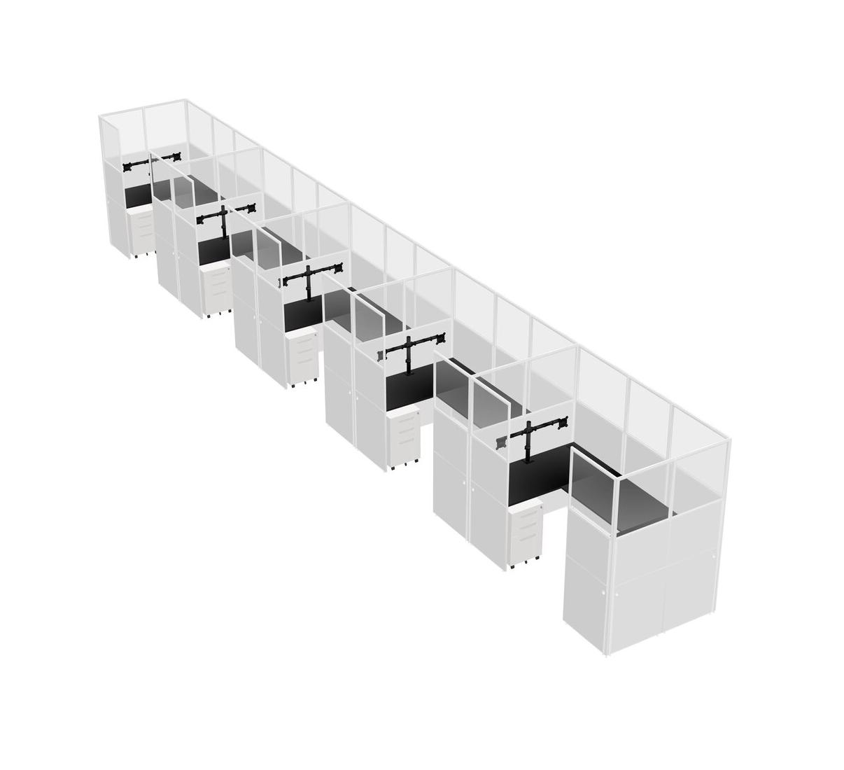 Système De Panneaux En U Noir Pour 5 Personnes + Bras D'écran (bras Doubles) + Tiroirs Mobiles En Métal Pour 5 Utilisateur(s)