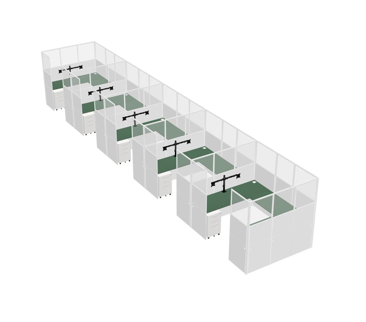 Système De Panneaux En U Vert Pour 5 Personnes + Bras De Moniteur (bras Doubles) + Tiroirs Mobiles En Métal Pour 5 Utilisateur(s)