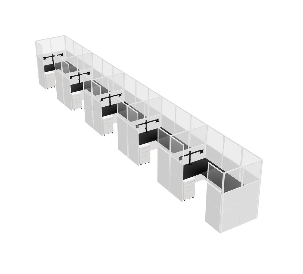 Système De Panneaux En U Noir Pour 5 Personnes + Bras D'écran (bras Doubles) + Tiroirs Mobiles En Métal Pour 5 Utilisateur(s)