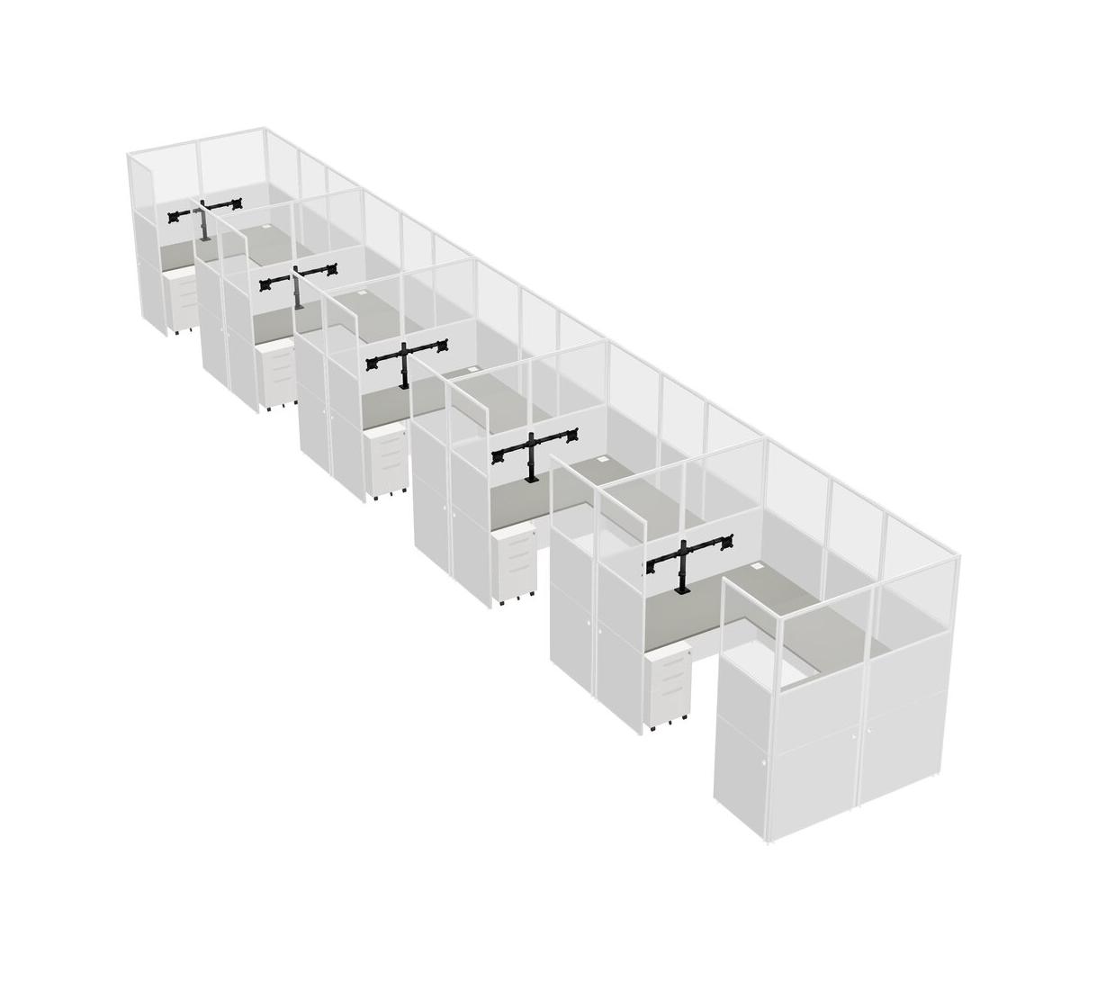 Système De Panneaux En U Grey Shadows Pour 5 Personnes + Bras D'écran (bras Doubles) + Tiroirs Mobiles En Métal Pour 5 Utilisateur(s)