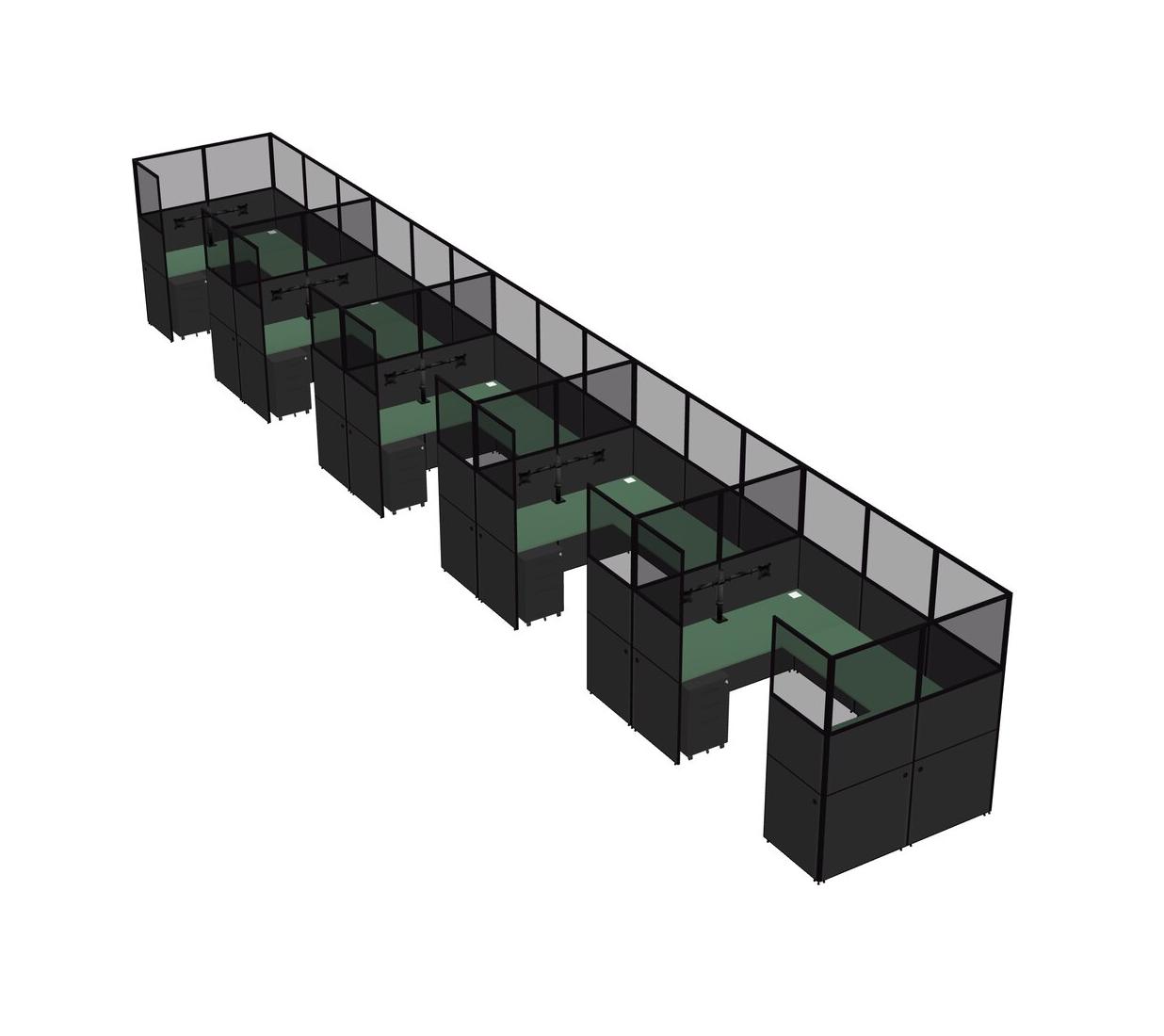 Système De Panneaux En U Vert Pour 5 Personnes + Bras De Moniteur (bras Doubles) + Tiroirs Mobiles En Métal Pour 5 Utilisateur(s)