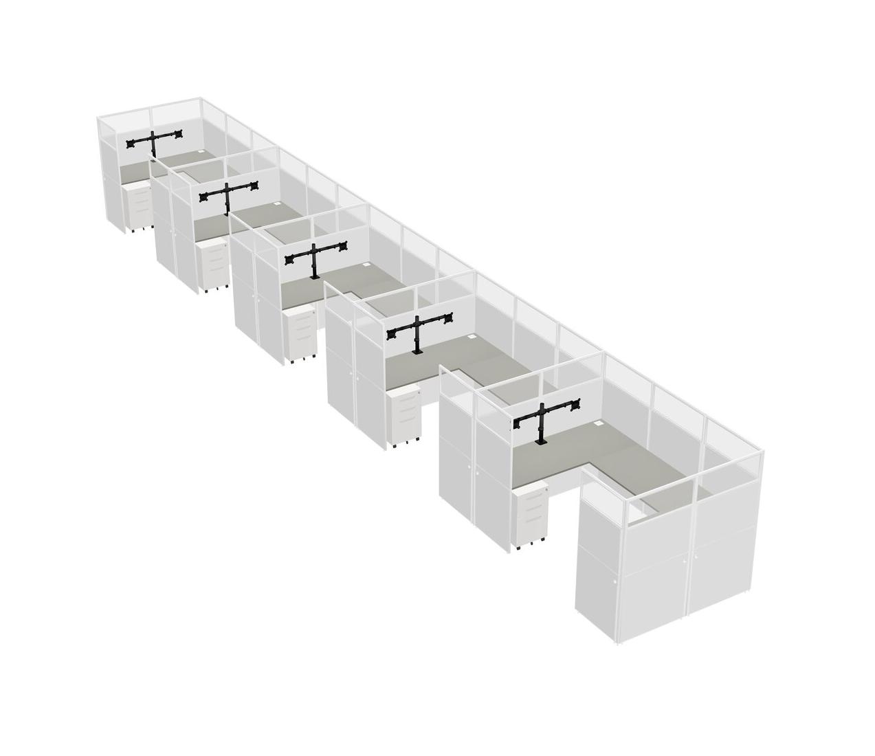Système De Panneaux En U Grey Shadows Pour 5 Personnes + Bras D'écran (bras Doubles) + Tiroirs Mobiles En Métal Pour 5 Utilisateur(s)