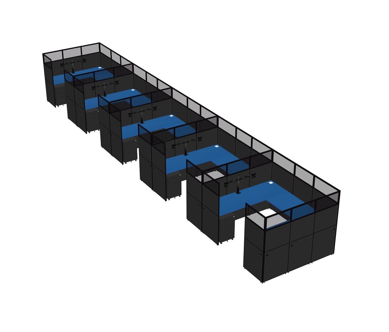Système De Panneaux En U Prism Blue Pour 5 Personnes + Bras D'écran (bras Doubles) + Tiroirs Mobiles En Métal Pour 5 Utilisateur(s)
