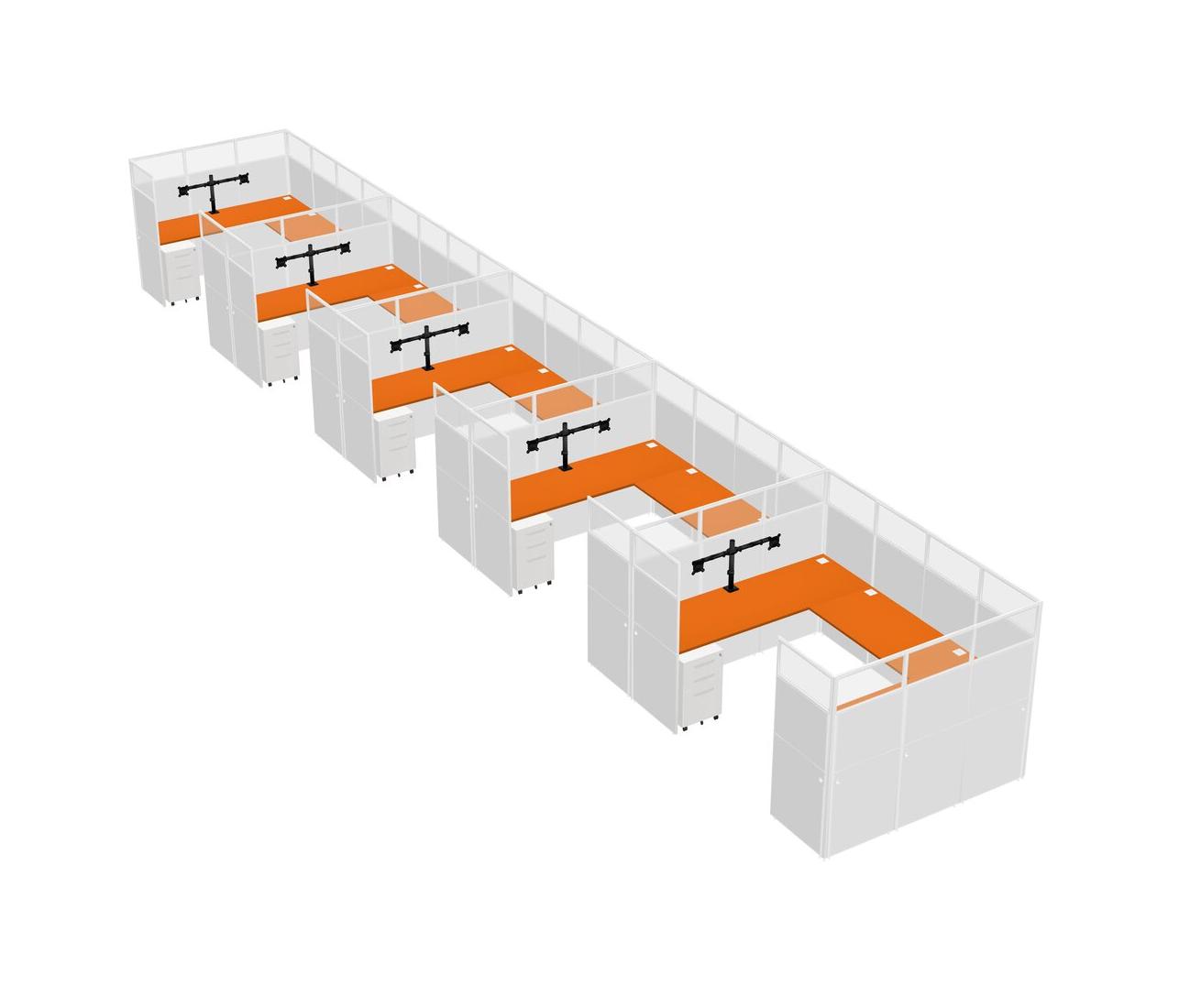 Système De Panneaux En U Orange Pour 5 Personnes + Bras De Moniteur (bras Doubles) + Tiroirs Mobiles En Métal Pour 5 Utilisateur(s)
