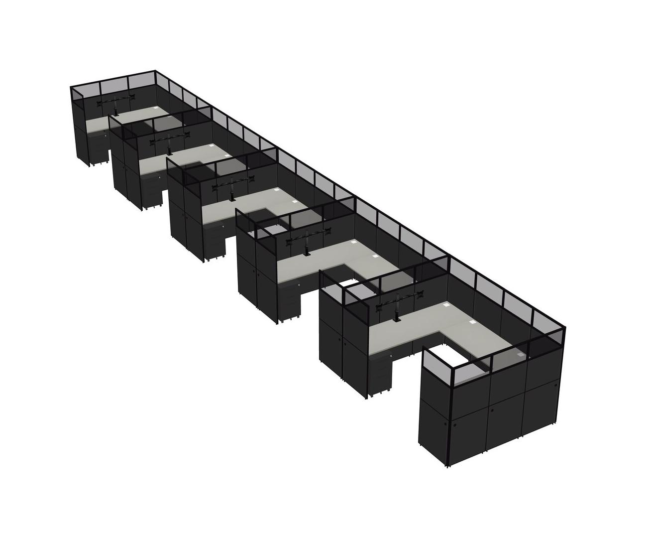 Système De Panneaux En U Grey Shadows Pour 5 Personnes + Bras D'écran (bras Doubles) + Tiroirs Mobiles En Métal Pour 5 Utilisateur(s)