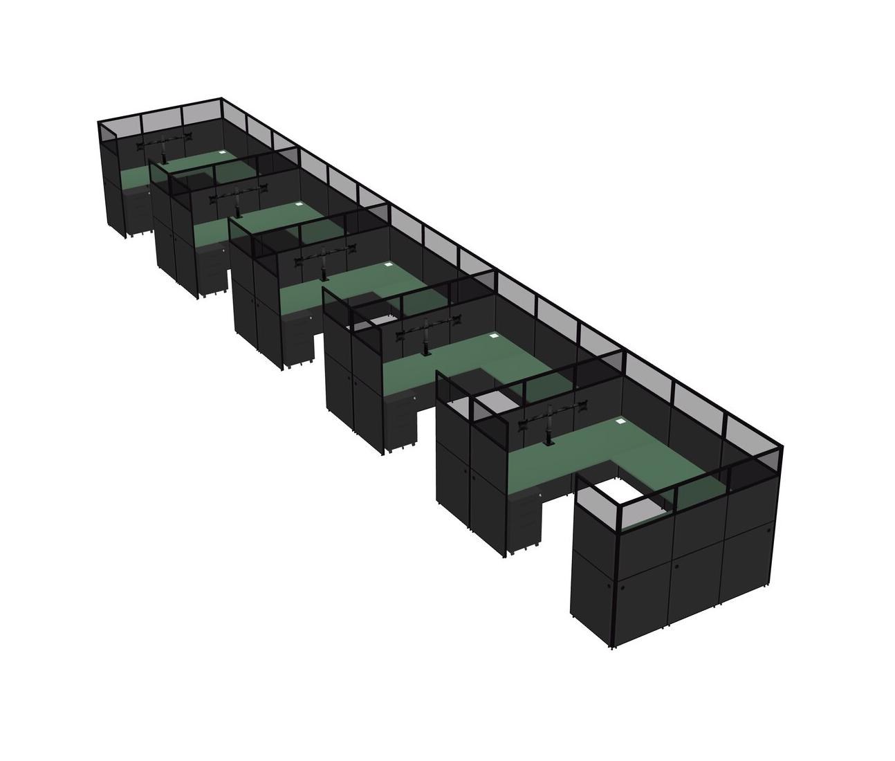 Système De Panneaux En U Vert Pour 5 Personnes + Bras De Moniteur (bras Doubles) + Tiroirs Mobiles En Métal Pour 5 Utilisateur(s)