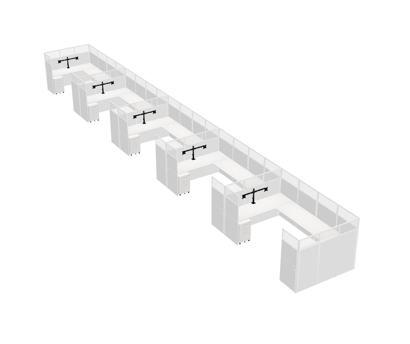 Système De Panneaux Blancs En U Pour 5 Personnes + Bras D'écran (bras Doubles) + Tiroirs Mobiles En Métal Pour 5 Utilisateur(s)
