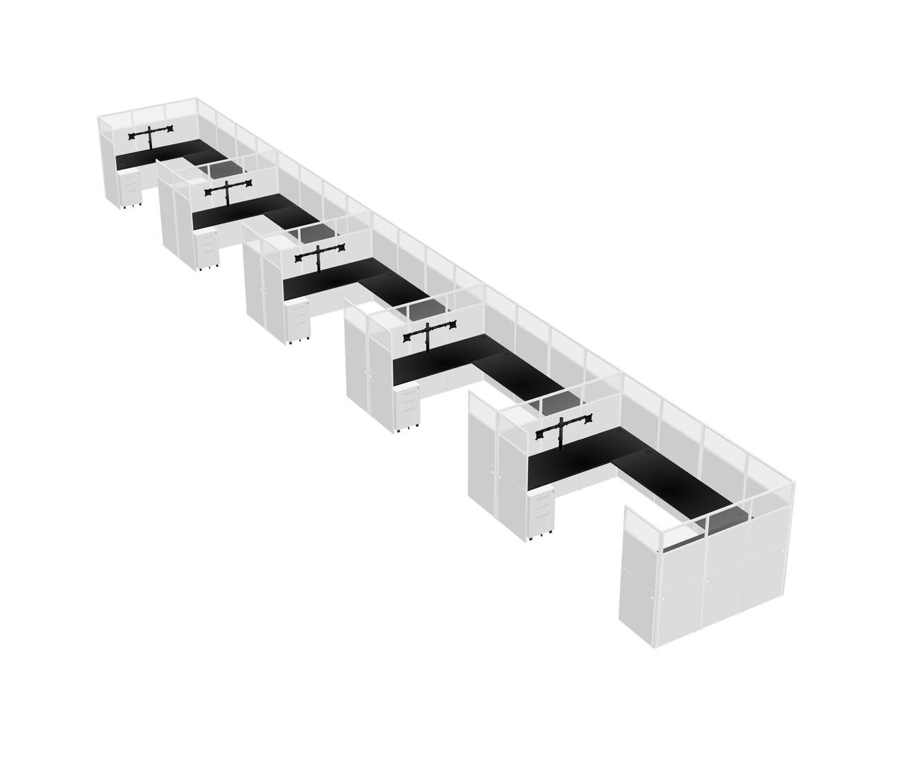 Système De Panneaux En U Noir Pour 5 Personnes + Bras D'écran (bras Doubles) + Tiroirs Mobiles En Métal Pour 5 Utilisateur(s)
