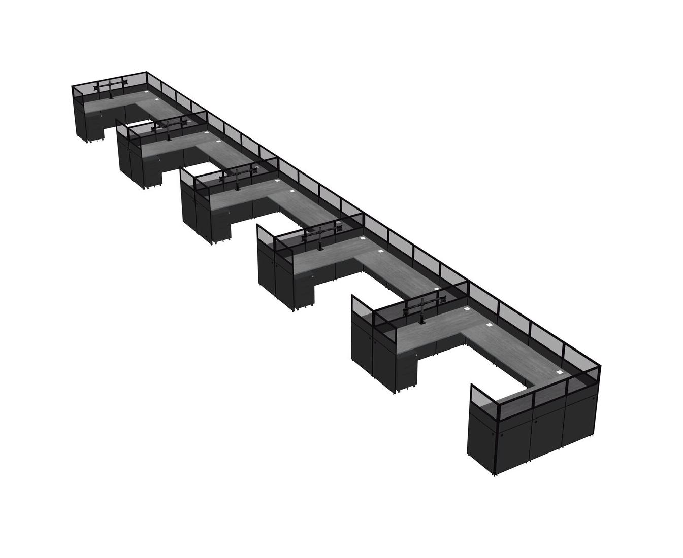 Système De Panneaux En U Gris Pour 5 Personnes + Bras D'écran (bras Doubles) + Tiroirs Mobiles En Métal Pour 5 Utilisateur(s)