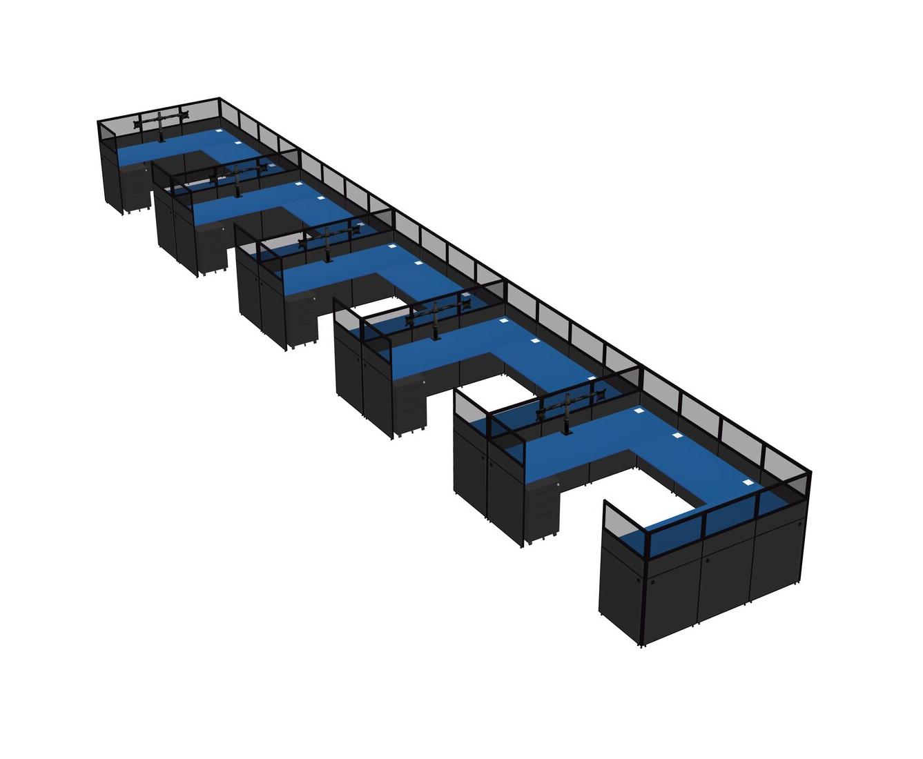Système De Panneaux En U Prism Blue Pour 5 Personnes + Bras D'écran (bras Doubles) + Tiroirs Mobiles En Métal Pour 5 Utilisateur(s)