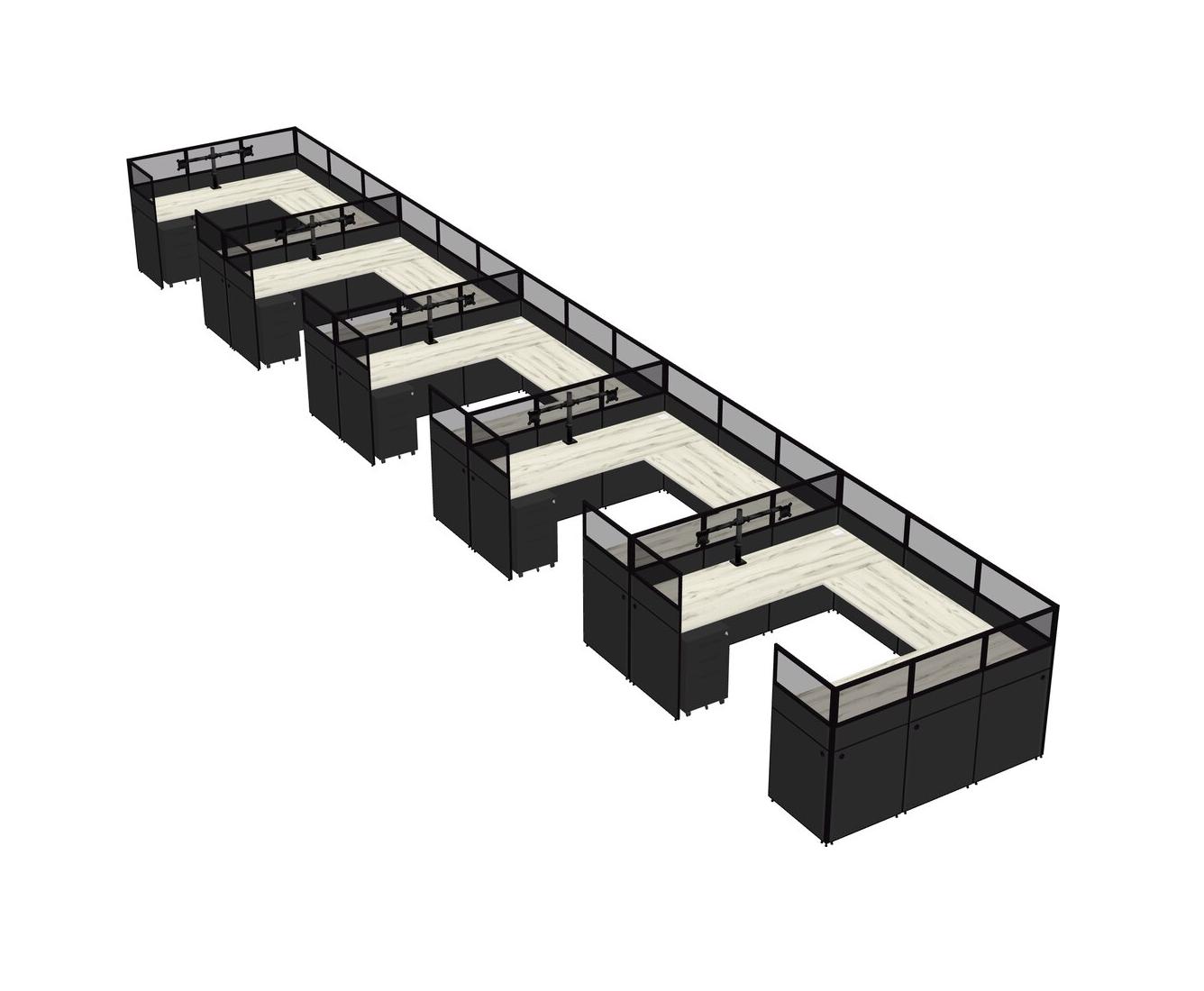 Système De Panneaux En U Heinne Holz Pour 5 Personnes + Bras D'écran (bras Doubles) + Tiroirs Mobiles En Métal Pour 5 Utilisateur(s)