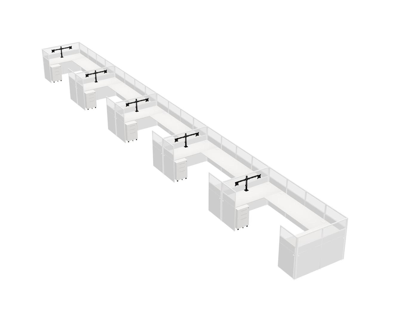 Système De Panneaux Blancs En U Pour 5 Personnes + Bras D'écran (bras Doubles) + Tiroirs Mobiles En Métal Pour 5 Utilisateur(s)