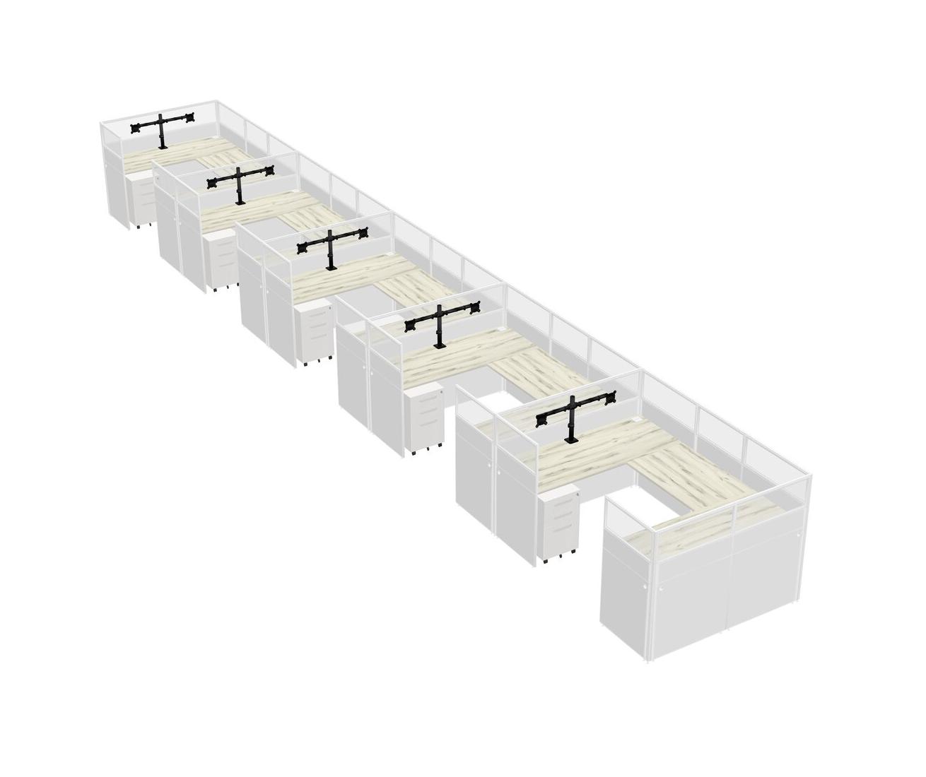 Système De Panneaux En U Heinne Holz Pour 5 Personnes + Bras D'écran (bras Doubles) + Tiroirs Mobiles En Métal Pour 5 Utilisateur(s)