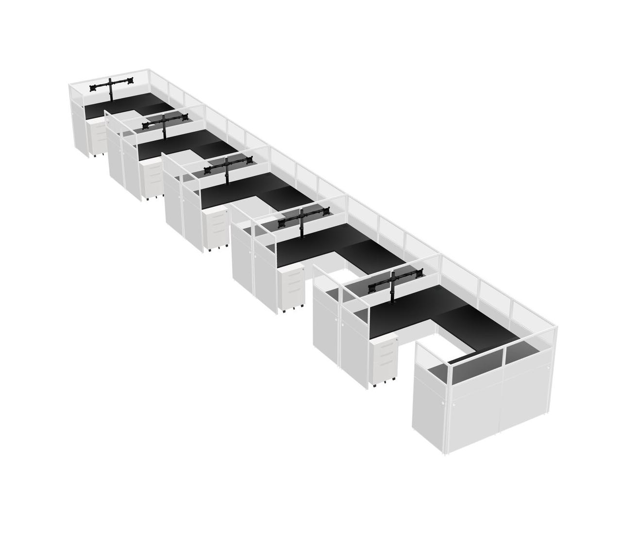 Système De Panneaux En U Noir Pour 5 Personnes + Bras D'écran (bras Doubles) + Tiroirs Mobiles En Métal Pour 5 Utilisateur(s)