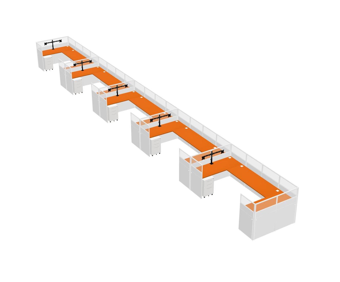 Système De Panneaux En U Orange Pour 5 Personnes + Bras De Moniteur (bras Doubles) + Tiroirs Mobiles En Métal Pour 5 Utilisateur(s)