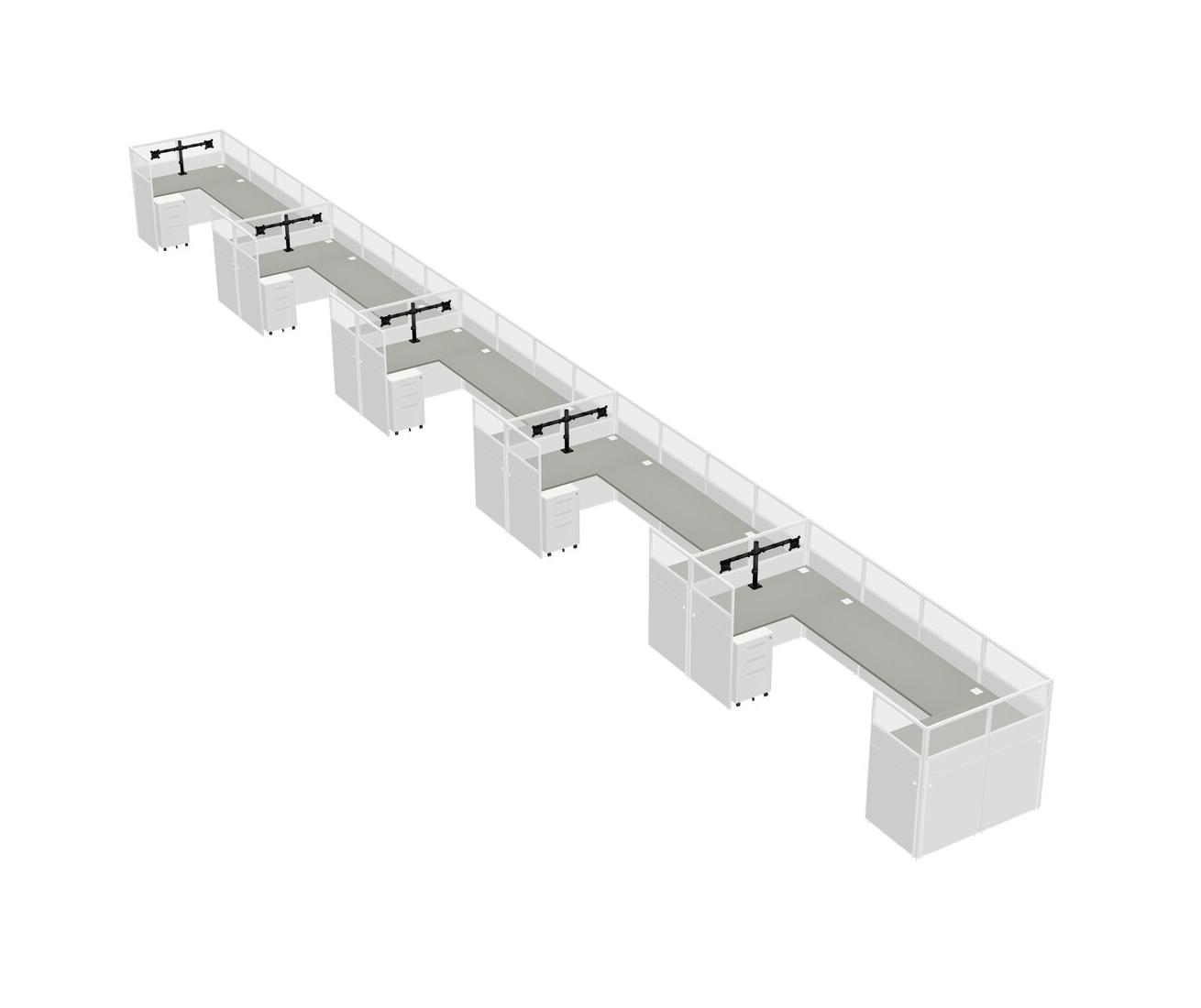 Système De Panneaux En U Grey Shadows Pour 5 Personnes + Bras D'écran (bras Doubles) + Tiroirs Mobiles En Métal Pour 5 Utilisateur(s)