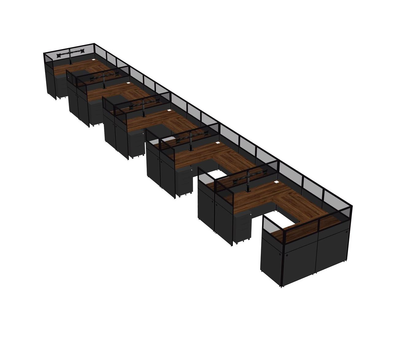 Système De Panneaux En U En Noyer Columbia Pour 5 Personnes + Bras D'écran (bras Doubles) + Tiroirs Mobiles En Métal Pour 5 Utilisateur(s)
