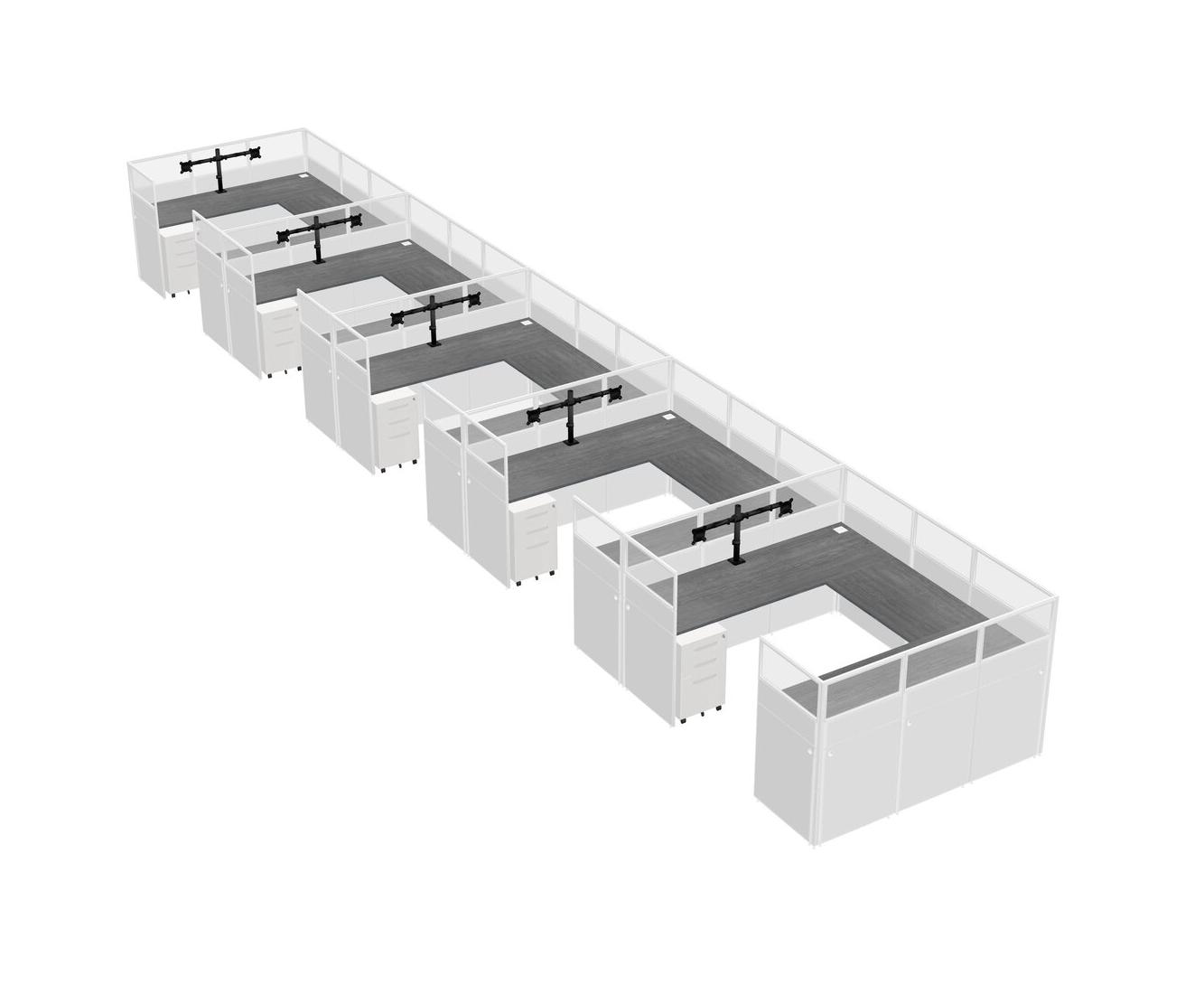 Système De Panneaux En U Gris Pour 5 Personnes + Bras D'écran (bras Doubles) + Tiroirs Mobiles En Métal Pour 5 Utilisateur(s)