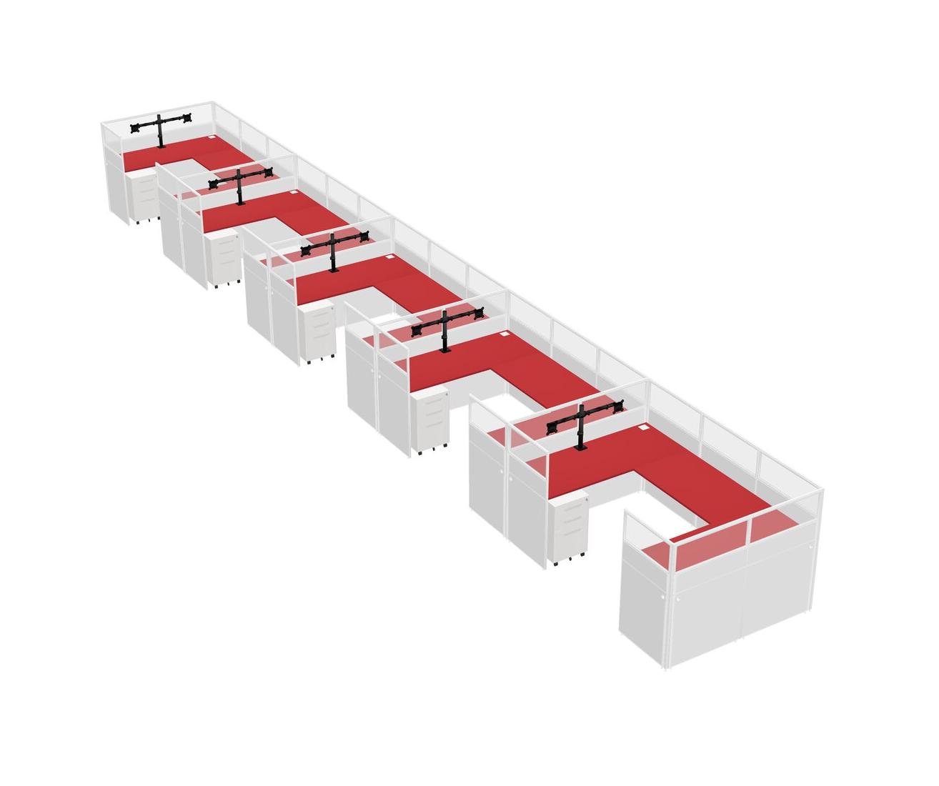 Système De Panneaux En U Prism Red Pour 5 Personnes + Bras D'écran (bras Doubles) + Tiroirs Mobiles En Métal Pour 5 Utilisateur(s)