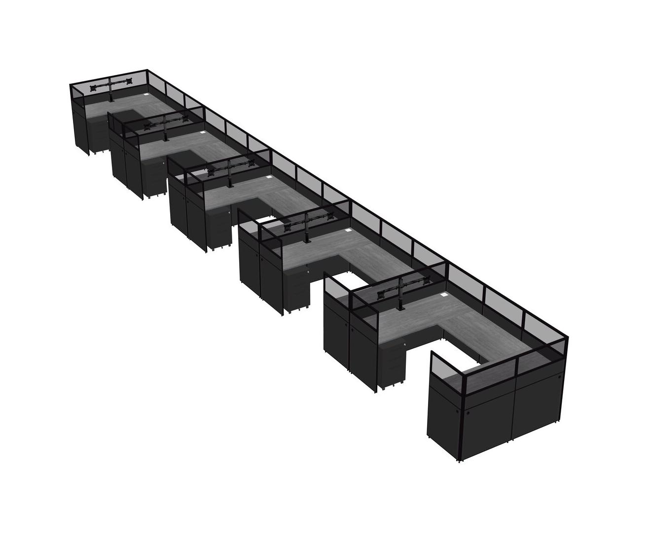 Système De Panneaux En U Gris Pour 5 Personnes + Bras D'écran (bras Doubles) + Tiroirs Mobiles En Métal Pour 5 Utilisateur(s)