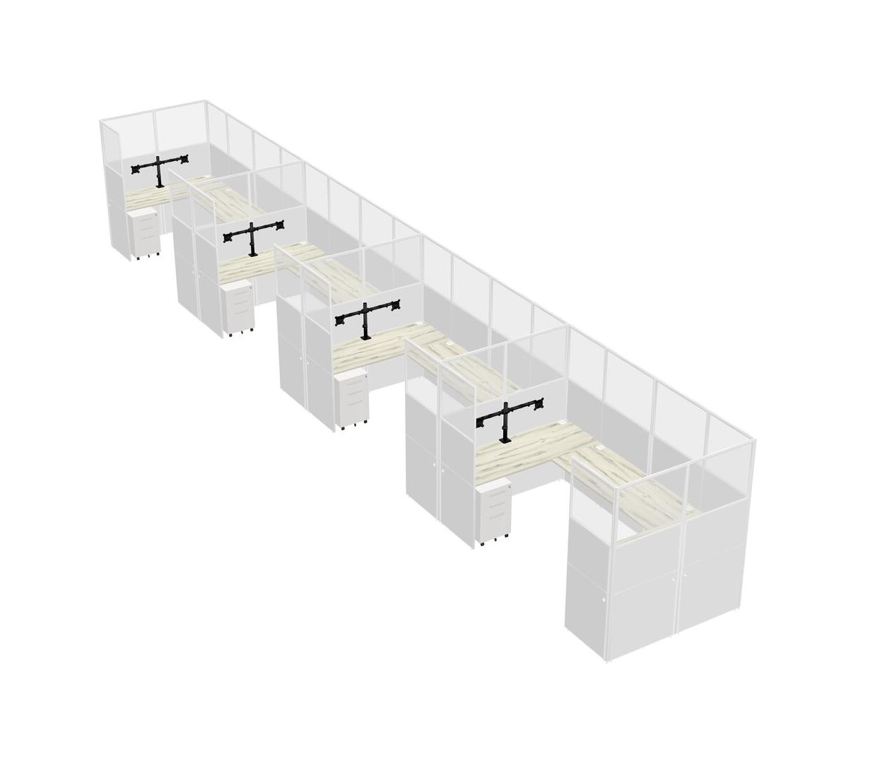 Système De Panneaux En U Heinne Holz Pour 4 Personnes + Bras D'écran (bras Doubles) + Tiroirs Mobiles En Métal Pour 4 Utilisateur(s)