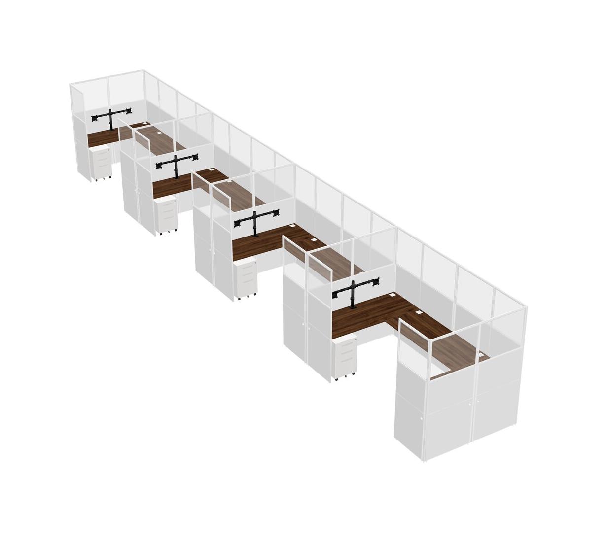 Système De Panneaux En U En Noyer Columbia Pour 4 Personnes + Bras D'écran (bras Doubles) + Tiroirs Mobiles En Métal Pour 4 Utilisateur(s)
