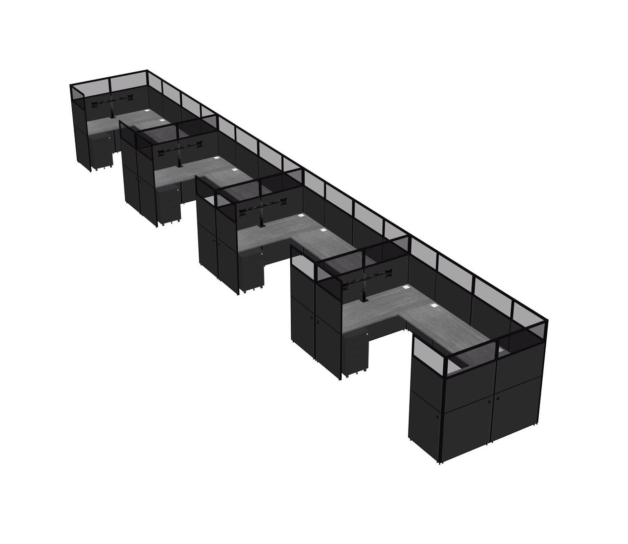 Système De Panneaux En U Gris Pour 4 Personnes + Bras D'écran (bras Doubles) + Tiroirs Mobiles En Métal Pour 4 Utilisateur(s)