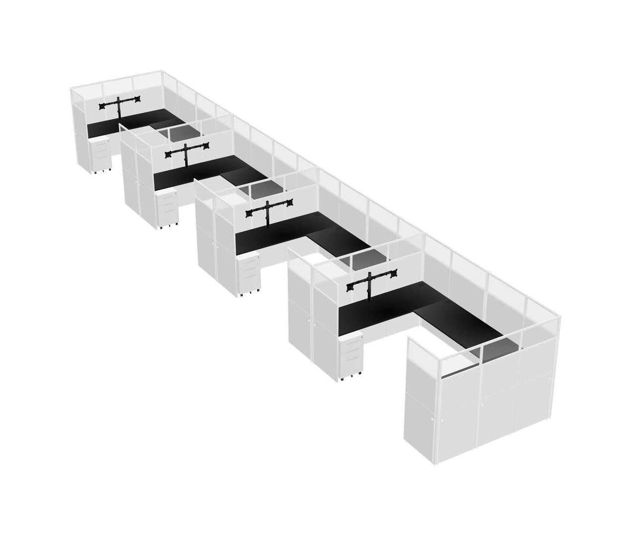 Système De Panneaux En U Noir Pour 4 Personnes + Bras D'écran (bras Doubles) + Tiroirs Mobiles En Métal Pour 4 Utilisateur(s)