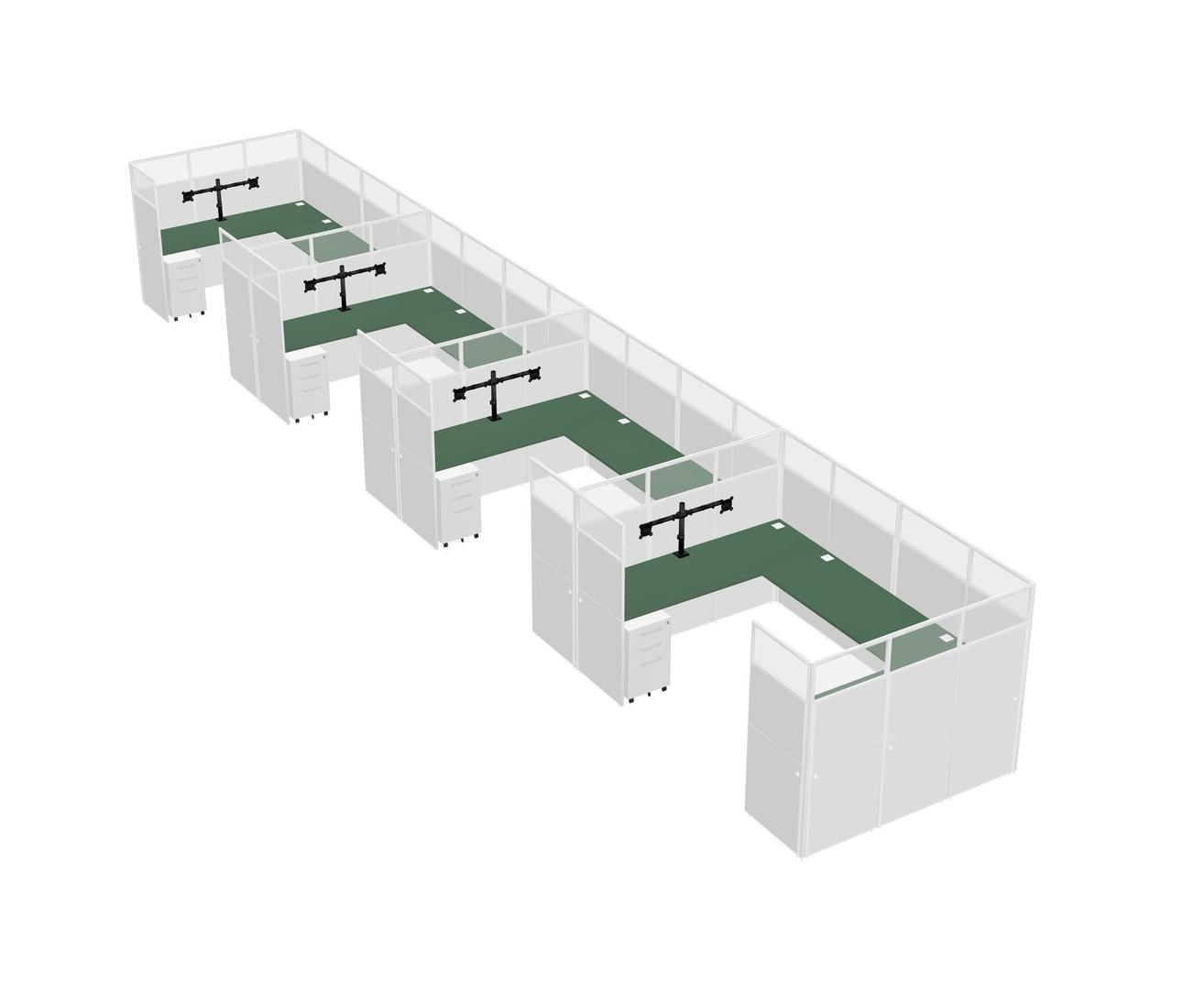 Système De Panneaux En U Vert Pour 4 Personnes + Bras D'écran (bras Doubles) + Tiroirs Mobiles En Métal Pour 4 Utilisateur(s)