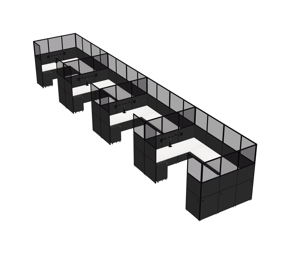 Système De Panneaux Blancs En U Pour 4 Personnes + Bras D'écran (bras Doubles) + Tiroirs Mobiles En Métal Pour 4 Utilisateur(s)