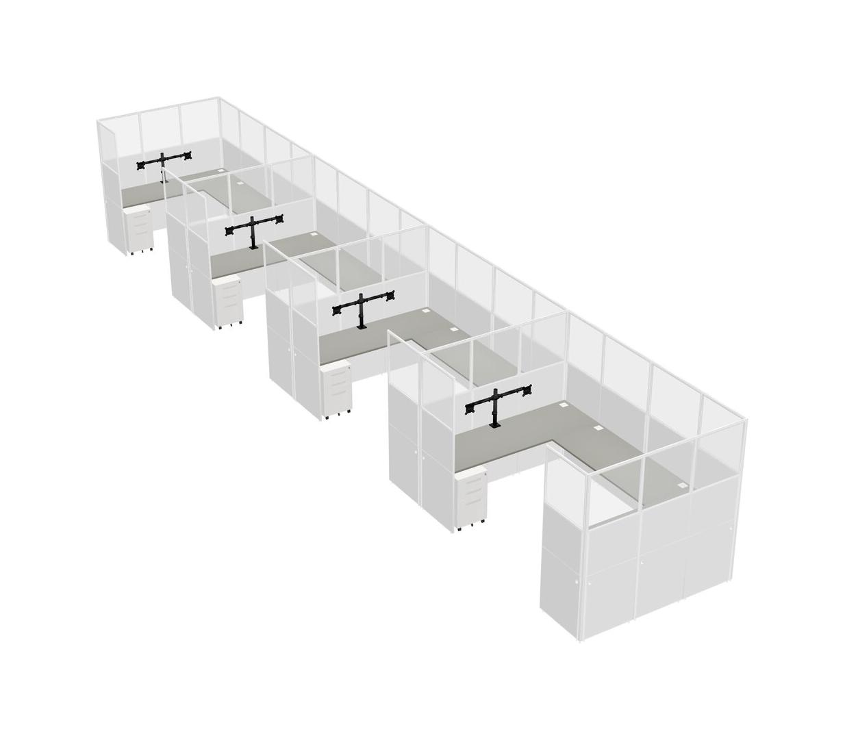 Système De Panneaux En U Grey Shadows Pour 4 Personnes + Bras D'écran (bras Doubles) + Tiroirs Mobiles En Métal Pour 4 Utilisateur(s)
