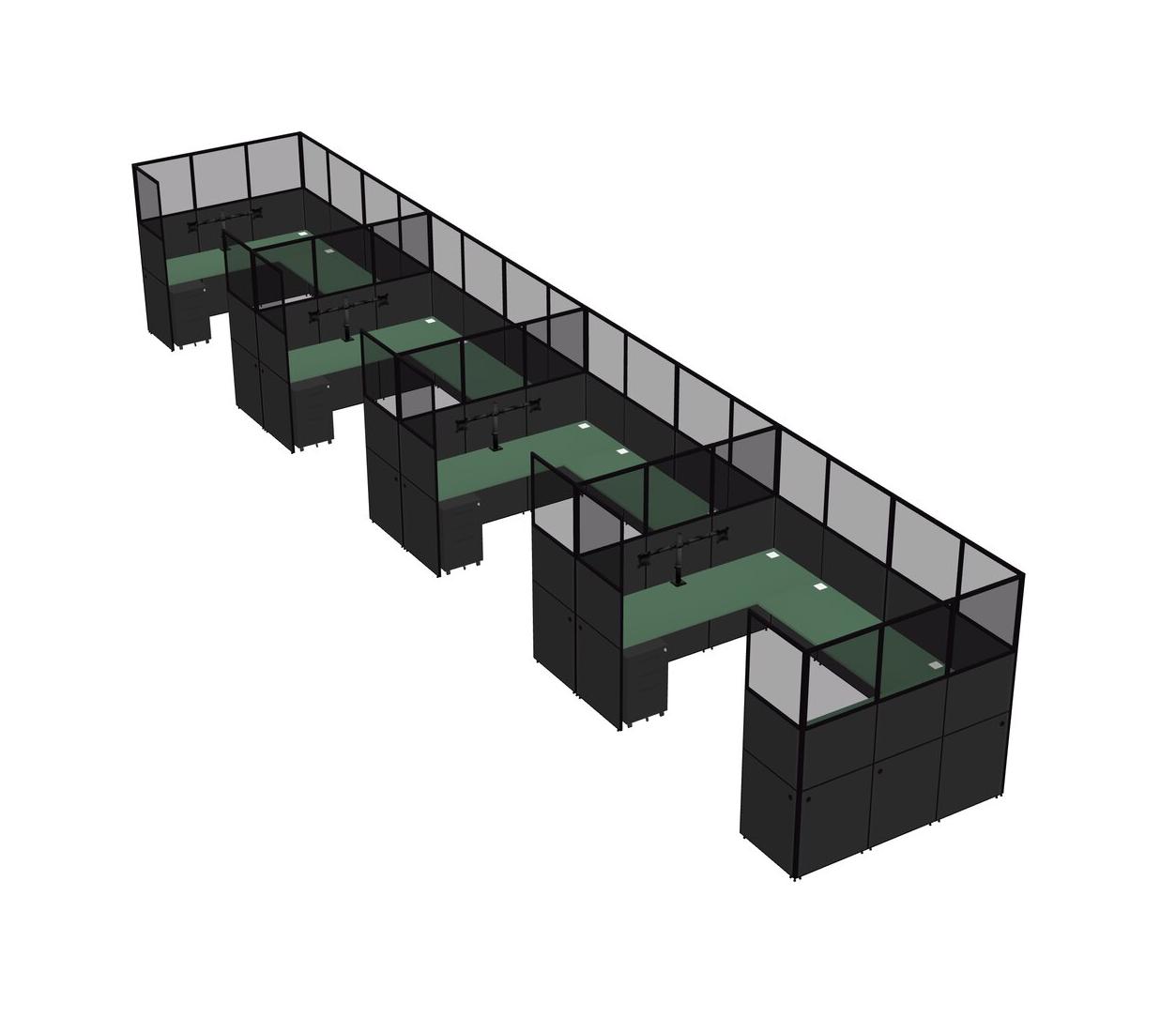 Système De Panneaux En U Vert Pour 4 Personnes + Bras D'écran (bras Doubles) + Tiroirs Mobiles En Métal Pour 4 Utilisateur(s)
