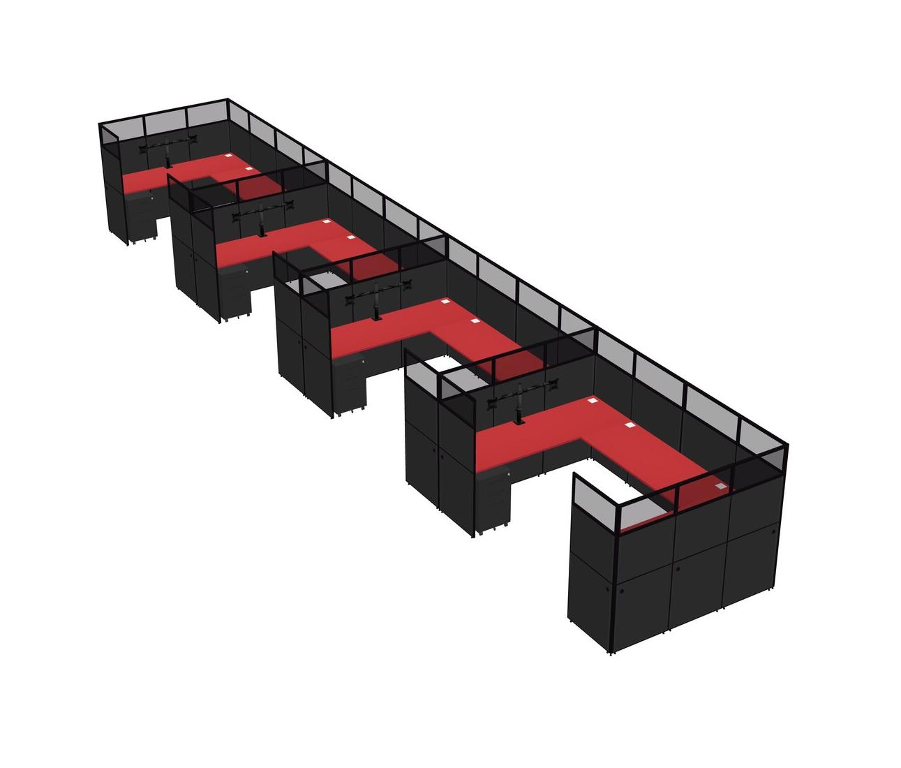 Système De Panneaux En U Prism Red Pour 4 Personnes + Bras D'écran (bras Doubles) + Tiroirs Mobiles En Métal Pour 4 Utilisateur(s)