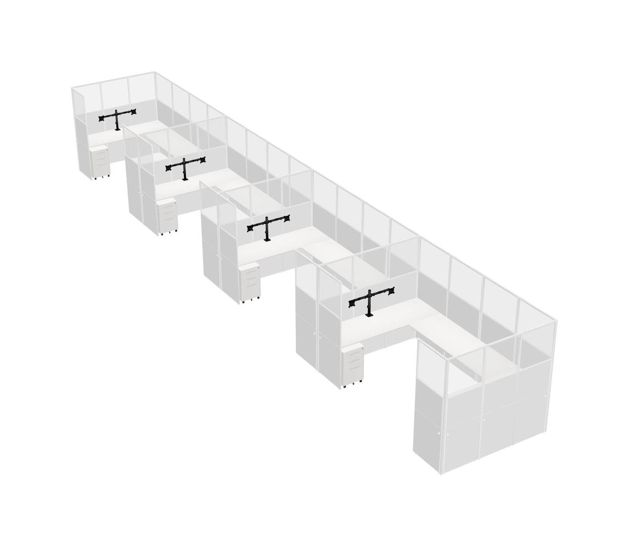 Système De Panneaux Blancs En U Pour 4 Personnes + Bras D'écran (bras Doubles) + Tiroirs Mobiles En Métal Pour 4 Utilisateur(s)