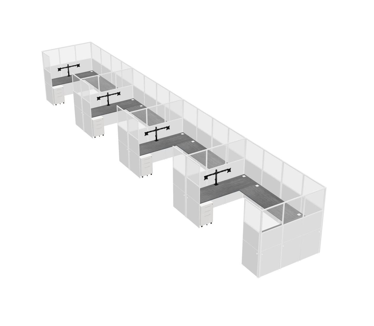 Système De Panneaux En U Gris Pour 4 Personnes + Bras D'écran (bras Doubles) + Tiroirs Mobiles En Métal Pour 4 Utilisateur(s)