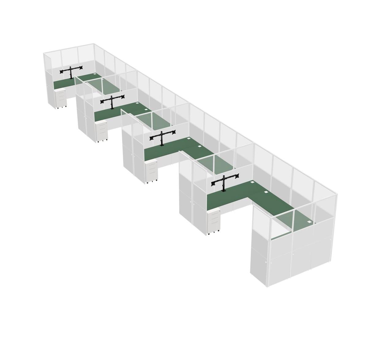 Système De Panneaux En U Vert Pour 4 Personnes + Bras De Moniteur (bras Doubles) + Tiroirs Mobiles En Métal Pour 4 Utilisateur(s)